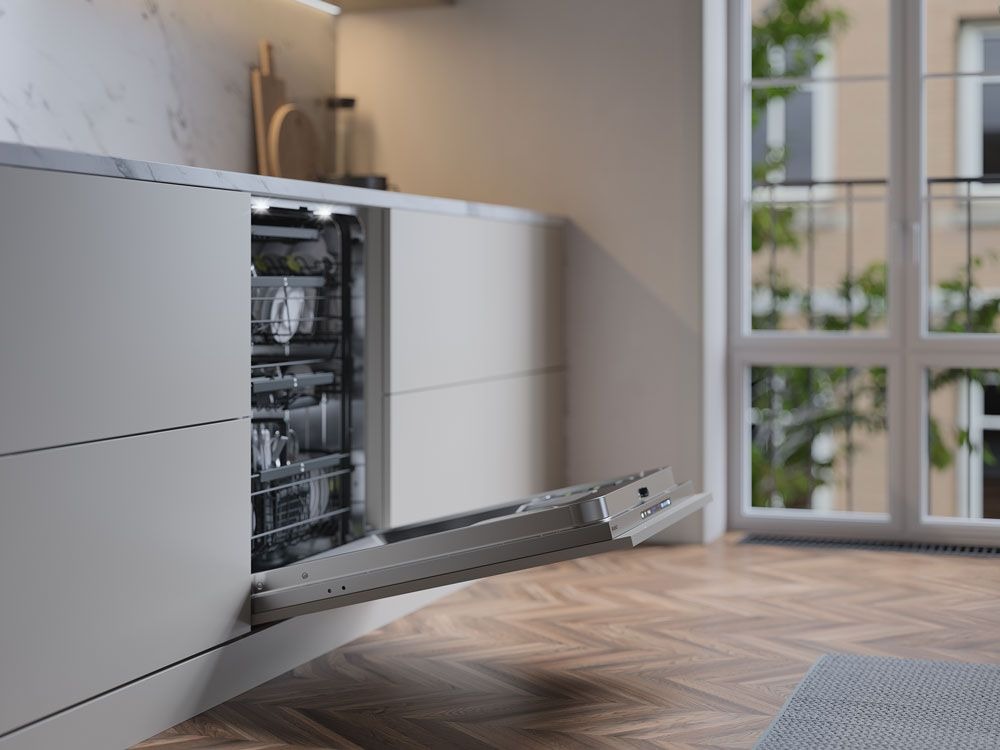 Повністю інтегровану посудомийну машину XL протестовано на 20 років експлуатації, оснащену трирівневою системою Flexi Racks™, низьким рівнем шуму (42 дБ), індикатором Status Light™ та Turbo Combi Drying™.